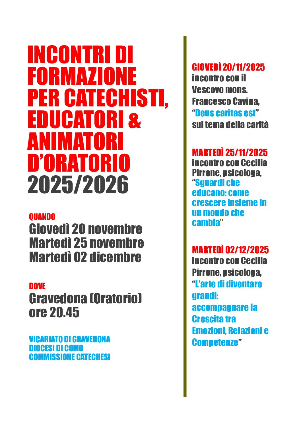 Incontri di formazione 2025/2026, Vicariato di Gravedona