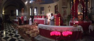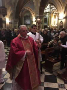 La tradizionale festa di San Biagio a Musso, molto sentita in paese e nelle zone limitrofe, ha visto anche quest’anno una nutrita partecipazione alle celebrazioni e alla benedizione della gola, pur in presenza di una giornata di pioggia (in questo periodo particolarmente attesa….). Fin dal mattino alle 7.00, con l’apertura della chiesa parrocchiale, è iniziato il flusso di fedeli per ricevere la benedizione della gola. Dapprima un po’ alla spicciolata, pochi alla volta, poi man mano che si avvicinava l’orario della S. Messa solenne, il numero è aumentato fino a diventare una continua coda per lasciarsi segnare dalla benedizione. Alle 10.30 ha preso il via il momento centrale della giornata che è stata la S. Messa solenne presieduta dal parroco di Ponte in Valtellina, don Giuseppe Scherini. Don Giuseppe nella sua omelia ha voluto evidenziare come San Biagio si sia preso cura sia del corpo, col celebre miracolo della guarigione del bambino, sia di quella dell’anima, offrendo la sua testimonianza di fedeltà a Cristo fino al martirio. Passando in rassegna le letture della Messa è stato ricordato come il cristiano manifesti la sua identità nell’aderire a Cristo, e questo dentro un mondo che rifiuta Dio. La stessa carità non è altro che la promanazione di quello che uno ha incontrato e ricevuto da Gesù. La Messa è stata accompagnata dai canti animati dalla corale di Musso, con l’aiuto di quelle di Cremia e Pianello. Alla celebrazione hanno partecipato una decina di sacerdoti della zona, contribuendo alla fine della Messa a benedire le gole di tanti fedeli. Alla S. Messa ha fatto seguito il pranzo in Oratorio dove sono state proposte leccornie per tutti i palati. Nella giornata è rimasta aperta la pesca di beneficenza presso la sala Frassati, e le mamme della Scuola dell’Infanzia hanno presentato le torte fatte per raccogliere offerte a sostegno dell’Asilo stesso. Il pomeriggio ha visto una continua affluenza in chiesa, e alle 17.00 c’è stata la S. Messa, presieduta dal parroco don Luca, che ha visto la presenza di due gruppi del catechismo. La giornata ha visto diversi momenti e anche la fattiva collaborazione di molte persone in vari ambiti; dalla liturgia, all’addobbo della chiesa, al canto, alla pesca di beneficenza, alla preparazione della cena della vigilia e del pranzo del giorno della festa, il servizio bar e la sensibilizzazione pro Asilo. Un vero concorso di gente che ha reso possibile proporre la festa patronale. Abbia san Biagio uno sguardo di particolare cura alla comunità di Musso, unitamente alla comunità di Cremia e Pianello, per aiutare a crescere nella fede.