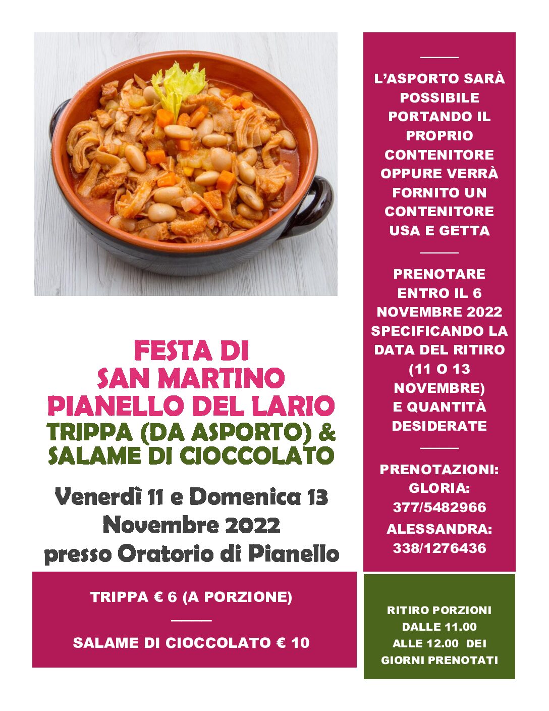 Trippa (da asporto) & salame di cioccolato per la festa di San Martino a Pianello del Lario