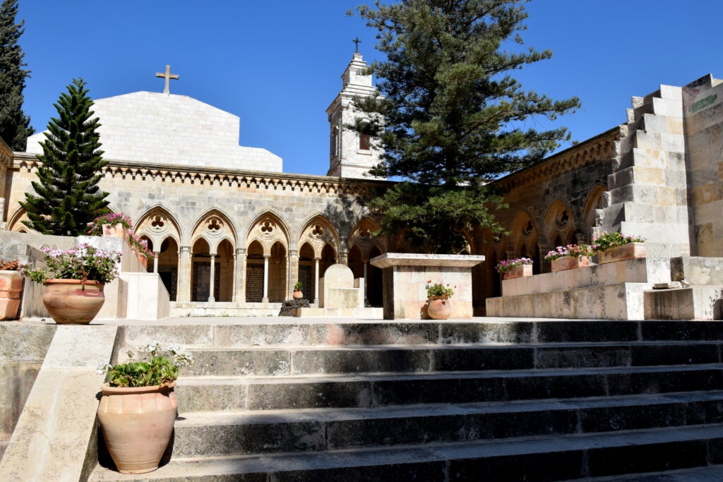 A poca distanza dal santuario dell’Ascensione è collocata, sempre scendendo, la chiesa del Padre Nostro detta dell’Eleona (dal greco elaion che significa “uliveto”). Qui si ricorda uno dei luoghi in cui Gesù si ritirava a pregare, ed è stato indicato come quello dove Gesù insegnò il Padre Nostro, la preghiera che ci viene consegnata nel Battesimo, dove diveniamo figli di Dio. Nel chiostro che circonda la chiesa sono presenti tante formelle che riportano la preghiera del Padre Nostro in diverse lingue. Proseguendo la discesa si passa accanto al grande cimitero ebraico della valle di Giosafat, in cui si crede avverrà il Giudizio universale. Nel scendere si scorge di fronte il superbo panorama su Gerusalemme che veramente mozza il fiato da tanto è bello e affascinante. A lato del grande cimitero ebraico sorge il grazioso santuario del “Dominus flevit” (in latino “il Signore pianse”). Qui si ricorda Gesù che davanti a Gerusalemme piange dicendo: “Se avessi compreso anche tu, in questo giorno, quello che porta alla pace” (Lc 19,42). Sorge un brivido nel cuore a rileggere oggi, alla luce dei fatti attuali in Israele, queste parole di Gesù.