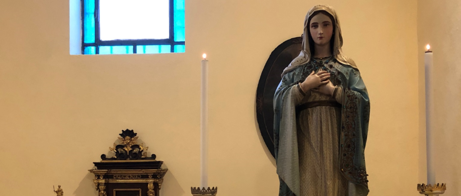 Nel mese di novembre dello scorso anno, effettuando dei controlli nel magazzino della chiesa di S. Biagio per una valutazione di quanto vi è conservato, il mio sguardo si è posato su una figura (a prima vista sembrava una statua accantonata in un angolo…)…controllando si è constatato della presenza di una statua, precisamente era la statua dell’IMMACOLATA . Subito alla mia mente si è presentato il ricordo di fanciullo, quando come chierichetto si assisteva al Sacramento del Battesimo, nell’aula destinata a questa celebrazione, entrando ti vedevi rivolgere il dolce, amoroso e immenso sorriso trasmesso da questa effige. Vicissitudini varie hanno portato al trasferimento del fonte battesimale e alla scomparsa di questa magnifica statua posizionata nel giusto contesto: “nel Battesimo si diventa figli di Dio, si viene inseriti nella Chiesa e si viene purificati dalla colpa originale che ha rotto il rapporto di amicizia dell’uomo con Dio.