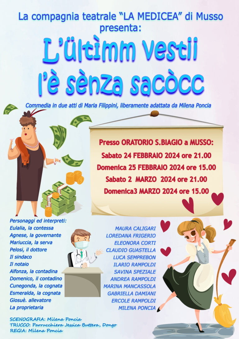 Teatro a Musso: “L’ültimm vestii l’è sènza sacòcc” 24/2-25/2 e 2/3-3/3