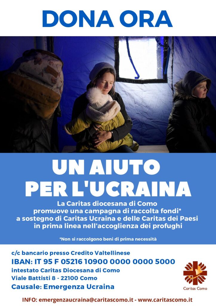 La nostra Comunità Pastorale aderisce alla iniziativa della Caritas diocesana a sostegno della Caritas Ucraina e delle Caritas dei Paesi in prima linea nella accoglienza dei profughi. Si segnala qui sotto l’IBAN (c/c Credito Valtellinese) per il versamento: IT 95 F 05216 10900 0000 0000 5000 intestato a Caritas diocesana di Como – Viale Battisti, 8 22100 Como. Causale; Emergenza Ucraina.