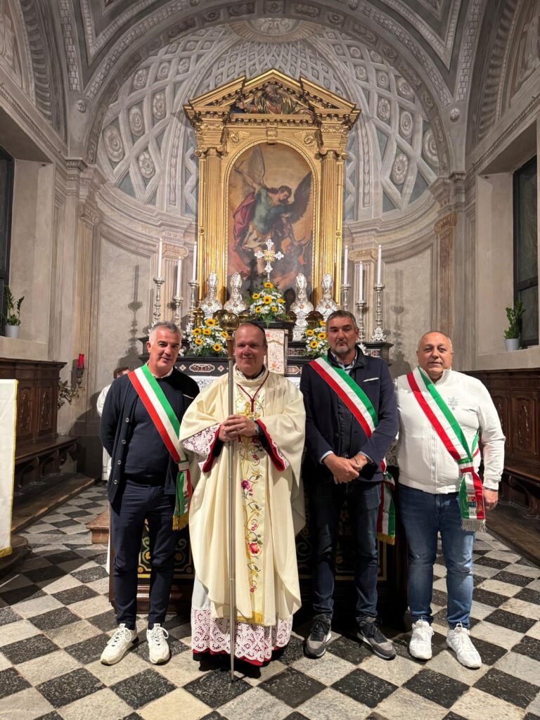 Questa icona, che rappresenta la Santa Famiglia, è stata regalata al parroco in occasione dei 10 anni della Comunità Pastorale, durante la celebrazione della Santa Messa di ringraziamento, venerdì 26 Settembre a Cremia. Essa è stata donata per ricordare che la nostra Comunità Pastorale è chiamata ad essere una famiglia. Una famiglia che prende ispirazione e spunto da quella di Nazareth, che viveva certa della Presenza di Cristo. Chiamata quindi a vivere la logica dell’amore e della fraternità, nel seguire quanto Gesù ci mostra. Nell’icona accanto a Gesù, Maria e Giuseppe sono presenti i quattro Evangelisti che ci consegnano la Parola di Dio, luce nel cammino. Ci sono ai lati della Santa Famiglia, due degli Arcangeli, annunciatori della volontà di Dio di salvare l’uomo. Le nostre tre Parrocchie sono invitate ad essere come una famiglia che cammina, insieme. Un cammino che prima della buona volontà di chi lo percorre è segnato dalla Grazia di Dio, che ci ama e ci chiama a servirlo. Dieci anni non per guardarsi indietro ma per proseguire, certi che tante cose ancora sono da vivere e da fare. Alla celebrazione erano presenti anche i tre sindaci, segno della volontà e dell’impegno alla collaborazione con la realtà comunale.